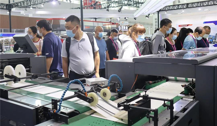 參展觀(guān)眾觀(guān)看北人智能SMLX200A數字印后生產(chǎn)線(xiàn)產(chǎn)品演示