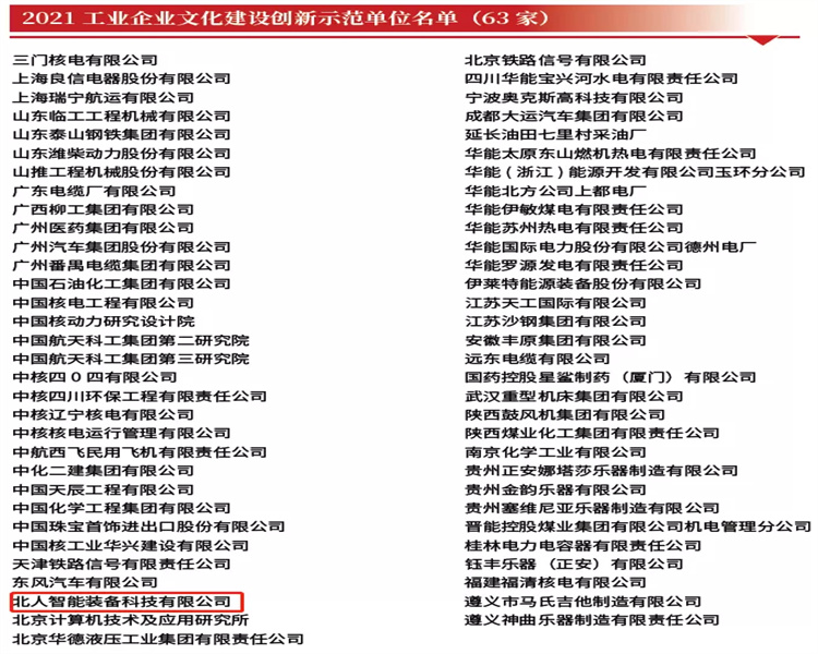 11月11日,中國工業(yè)新聞網(wǎng)及中國工業(yè)報刊登了“2021工業(yè)企業(yè)文化建設創(chuàng )新示范單位及創(chuàng )新人物、成果”獲獎名單,北人智能被評為“2021工業(yè)企業(yè)文化建設創(chuàng )新示范單位”。評選活動(dòng)的開(kāi)展旨在挖掘和培育我國工業(yè)企業(yè)文化建設典型,引領(lǐng)企業(yè)高質(zhì)量發(fā)展。