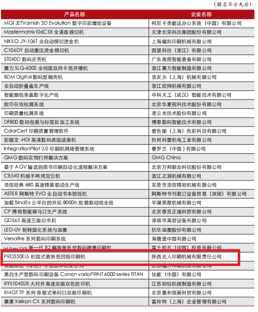 與此同時(shí),由《印刷工業(yè)》雜志社發(fā)起的“2022中國印刷裝備用戶(hù)好評活動(dòng)”結果也隆重揭曉,共有32家企業(yè)的32個(gè)產(chǎn)品獲得用戶(hù)好評。陜西北人PRD350ELS機組式裝飾紙凹版印刷機獲頒“2022中國印刷用戶(hù)好評裝備”獎殊榮!