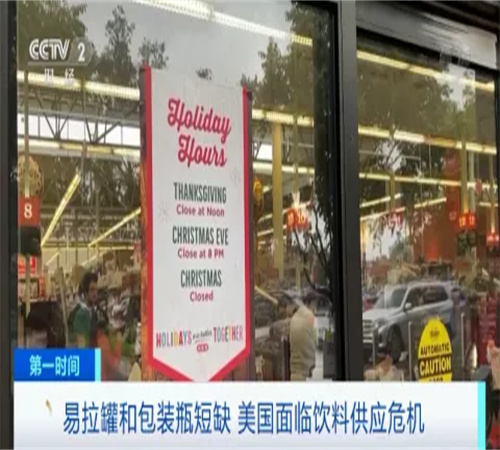 在美國,隨著(zhù)年底假期的臨近,人們對啤酒、可樂(lè )等飲料的需求量也出現上升。然而,由于供應鏈危機仍在持續,包裝瓶和易拉罐等出現短缺,導致美國市場(chǎng)上飲料的供應明顯不足。